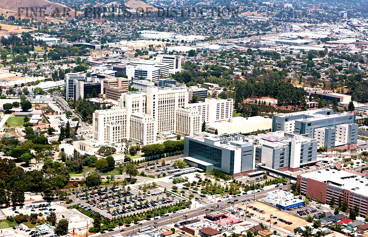 An Art Print of An Aerial View of Los Angeles, California for sale by Brandywine General Store. Our artwork shows the downtown area of this country's second largest city. In 1781 A group of 11 families comprising 44 Mexicans settles by the river, forming the beginning of the city of Los Angeles. Felipe de Neve, Governor of Spanish California, names the settlement El Pueblo Sobre el Rio de Nuestra Señora la Reina de los Angeles del Río de Porciúncula. The name is shortened rather quickly. Picture #128 a premium quality California landscape print.
