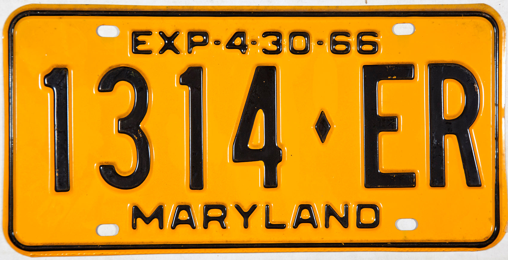 A 1966 Maryland truck License Plate for sale at Brandywine General Store. The color of this 66 MD DMV pickup tag is deep yellow with black letters. The Maryland department of motor vehicles issued license plates in pairs during the model year of 1966 but this sale is for one tag only, would be great for any collection or a birth year run. We have more than one 1966 Maryland truck license plates available for sale, but we have included a picture of each tag currently in our inventory.