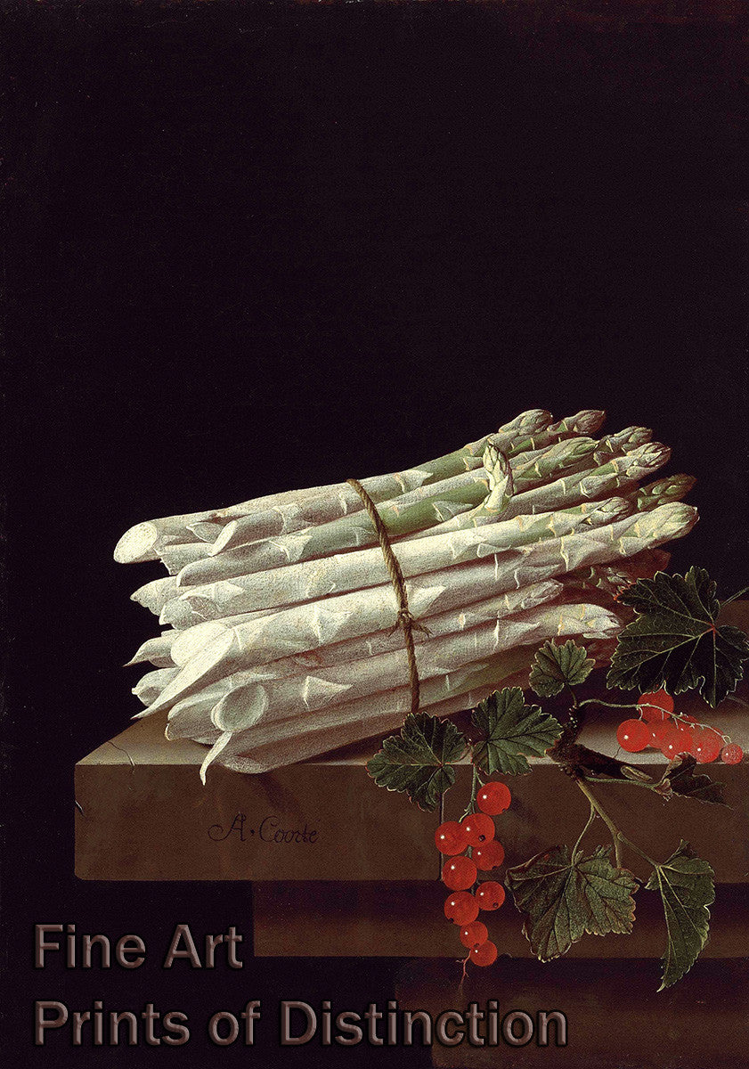 Coorte, Adriaen - Asparagus and Red Currants on Stone Ledge Art Print